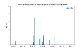本数据为策勒荒漠草地生态系统国家野外科学观测研究站于2013年1月1日至12月31日期间采用自动气象站观测的逐日尺度降水量实测记录,数据由设备数据采集器导出后经由人工检查核验产生,数据质量良好无缺失。